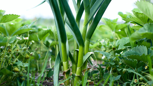 Теперь сажаю чеснок только по клубнике. При совместной посадки чеснок вырастает размером с яблоко