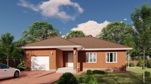 12 популярных проектов одноэтажных домов с гаражом и террасой