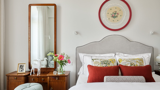 Это лучшая квартира в «сталинском» доме, которую я видела за последнее время. Мне понравилось то, что здесь дизайнер Ольга Цурикова смогла сохранить не только множество старинных предметов мебели и других ретро вещей, но и саму аутентичную атмосферу исторического дома. Например, входную дверь сделали новую, но по точным эскизам оригинальной. И даже приятный оттенок синего в прихожей, появился не просто так, этот цвет задал старинный звонок, который мы видим над дверью. 2-комн. Квартира 56 м. кв. в Москве досталась от бабушки по наследству, некоторое время стояла пустой и в ней никто не жил...