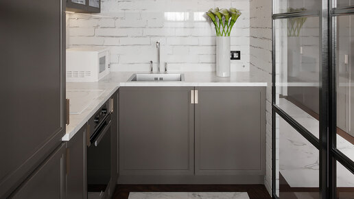 Типовая однушка 40 м² в новостройке с кухней и спальней в стеклянном кубе