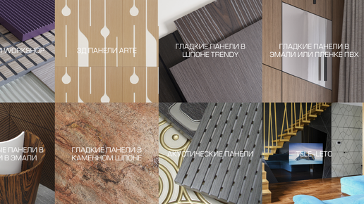 Один из наших самых любимых вопросов! В нашем каталоге можно найти рельефные панели, авторские панели от дизайнеров, гладкие панели в шпоне или эмали, радиусные панели (и это ещё не всё). Каталог панелей на нашем сайте. Для простоты наши панели можно разделить на 2 группы: шпонированные и 3D. На нашем производстве в городе Дмитров мы можем сделать любые панели из нашего каталога высотой до 3500 мм (или конкретно под необходимые размеры для каждого отдельного проекта). Мы любим работать со шпоном и предлагаем выбор из высококачественных линеек от Alpi и Woodstock...