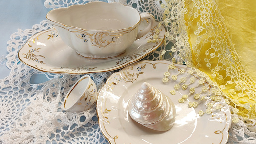 Кто говорил, что будет собирать только посуду строгих форм с минималистичным декором? Это была я?! А, точно я и принципы мои, строго соблюдаемые 😄 И что тем принципам будет от одной махонькой солоночки? Малипусенькой такой, с незабудками... Чисто для разнообразия! А вот дальше что-то пошло не по плану. Или нет, это был план А, но ведь есть еще и план Б. И план В! Смотрю я фотки из того магазина и неожиданно в другой витрине обнаруживается овальное блюдо типа селедочницы, тоже из Барановского сервиза "Незабудки"...