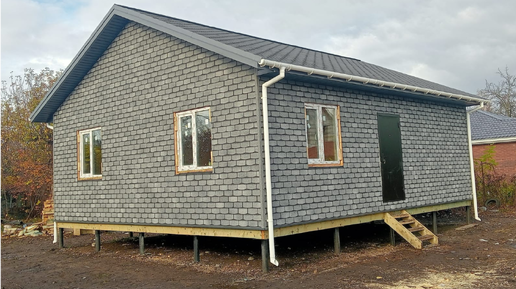 Дом из СИП панелей по проекту «Ялта» бригада «ДСПК» построила в ДНТ «Мичуринец». Это черта города и использовать дом можно не только для летнего отдыха, но и для постоянного проживания. По желанию заказчика в типовой проект было внесено изменение. Изначально в «Ялте» предусмотрена большая терраса. От террасы решили отказаться в пользу увеличения жилой площади. 📍Площадь дома: 70,9 м2. 📍Размеры: 9 х 7,875 м. 📍Высота потолка: 2,5 м Фундамент: - Винтовые металлические сваи 108 мм, цементно-песчаная...