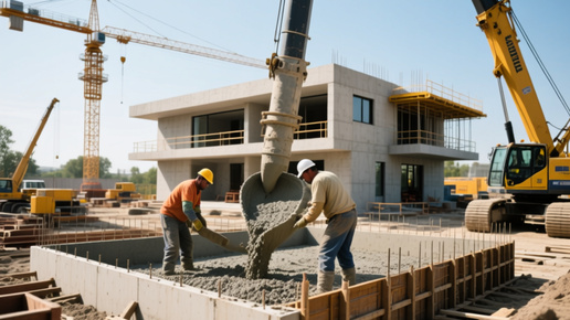 Монолитный дом – это когда весь каркас льётся на месте из бетона с арматурой, без фабричных блоков. Представь, как жидкий камень заполняет формы и твердеет в единую конструкцию...
