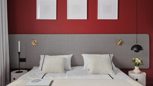Этот эффектный проект интерьера студии создан студией Berezin interiors. Здесь запоминается все — красные стены, классическая лепнина и даже зеркальный шкаф, который больше напоминает предмет искусства. Интерьер получился красивым, ярким, и функциональным, так как, вероятно, пространство предназначено для посуточной аренды. Вытянутое пространство студии с одним окном было поделено на несколько функциональных зон — спальня, место для работы с ноутбуком, кресло для чтения, обеденная зона, кухня и прихожая-гардеробная...