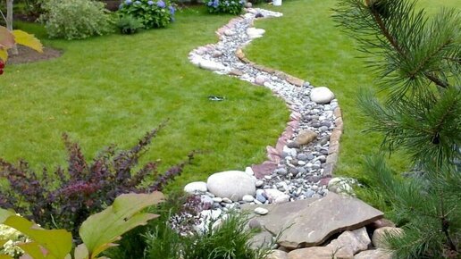 Сухой ручей - оригинальный элемент ландшафтного дизайна, способный украсить любой участок.  Особенно актуально его создание там, где нет возможности соорудить настоящий водоем⛲ ✅ Выкапываем русло, определяем границы малой формы.  При помощи шпагата, колышков или песка наметьте форму будущего русла. Не забудьте учесть проходящие сети коммуникаций, чтобы ручей не мешал им.  Верхний слой земли снимаем, выкапываем нужную глубину ручья. Глубина будет зависеть от цели (декор или дренаж) и размеров камней, которыми вы собираетесь выложить свое русло...