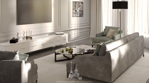 Эту двухкомнатную квартиру как будто окутала легкая туманная дымка парижского утра. Монохромный интерьер, для оформления которого использована модная серая палитра, впечатляет благородством линий и форм. А в строгом рельефе стен с имитацией панелей буазери, сдержанном лепном декоре и изящных штрихах в оттенках золота «читается» ненавязчивый классический подтекст. 1. Игра фактур Благородный ворсистый велюр, гладкая штукатурка, рельефные фасады комода – в этой гостиной идет азартная игра фактур, обогащая и усложняя обстановку...