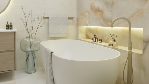 Дизайн современной ванной комнаты с плиткой под оникс: элегантность и функциональность