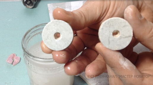 Привет, друзья! Сегодня хочу показать, как можно быстро и просто сделать полезную самоделку для кухни - точилку для ножей. Зачастую бывает так, что ножи заточить нужно "здесь и сейчас", а точильного камня в доме нет, либо отыскать его не получается. В таком случае, можно буквально за несколько минут смастерить точилку самостоятельно. И сейчас я расскажу вам, как это сделать. Нам понадобится кусок керамической плитки и деревянный брусок: Из куска керамической плитки нужно сформировать два небольших одинаковых кусочка круглой формы, с отверстием по центру...