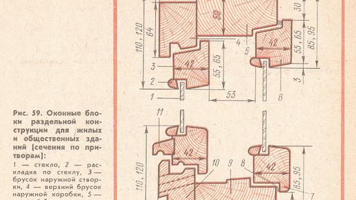 Оконный деревянный блок состоит из оконной коробки и оконных переплетов, которые включают створки, фрамугу, форточку.
