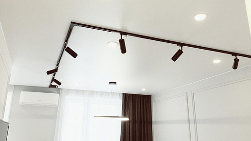 Трекинговое освещение в натяжных потолках: современно и удобно.