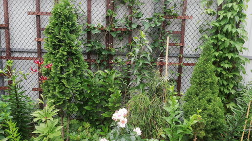 Туи 'Degroot's Spire' и 'Filiformis' - одни из первых хвойных, посаженных мной на даче. Куплены были в "Опт-Хозе" маленькими саженцами-двухлетками в далеком 2015 году. Посажены были тоже вместе, рядышком. Так и подрастали понемногу до переезда в новый сад. В 2020-м были увезены с дачи и в саду посажены тоже рядом. Такие вот друзья-товарищи. Поэтому и в статье они у меня тоже вместе. Фотографий моих туй с дачи, в принципе, нет и не было, так как росли они медленно, вида особого не имели, поэтому и в кадр особо не попадали...