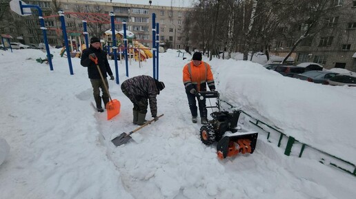 Во дворе дома №24 на улице Босова в Истре закончили уборку снега на детской площадке — территорию расчистили и снова сделали удобной для детских игр. С утра на площадке работали трое дворников. Один откалывал лопатой плотные ледяные пласты, второй убирал наледь специальным инструментом, а третий подключил ротор — он перемалывал отколотый и слежавшийся снег...