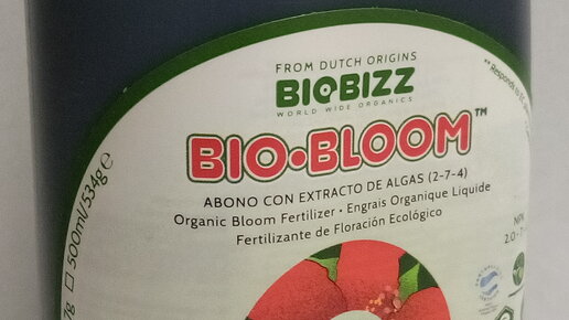 Обзор удобрений BioBizz Удобрение Bio Bloom Bloom в переводе означает «цвести», удобрение BioBizz Bio Bloom ускоряет процесс цветения растений. Cодержит оптимальное сочетание основных питательных веществ: калия, фосфора и азота, а также аминокислот и ферментов - все они работают в идеальной гармонии с почвой. Микроэлементы и гормоны растительного происхождения были добавлены для создания мощного цветущего растения, обладающего сильным стеблем. Bio Bloom используется как независимое удобрение от цветения до сбора урожая...