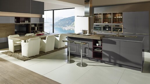 Угловые или Г-образные кухни универсальны, практичны и максимально функциональны. Кухня буквой Г может комплектоваться дополнительной рабочей зоной в виде острова, что позволяет расширить полезную площадь, не загромождая помещение. Сам угловой модуль в современных кухнях может быть как прямым, так и скошенным, что расширяет возможности по созданию эргономичного интерьера под запросы конкретного человека. Яркий пример углового интерьера кухни — Camelot Castle (Beckermann). Плюсы угловой кухни: Из минусов — Г-образный гарнитур подходит не для всех помещений...