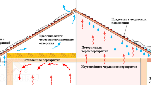 Значительная часть потерь тепла в холодное время года в частных домах происходит через крышу. В связи с этим в зданиях с неотапливаемым чердаком проводятся работы по теплоизоляции. В большинстве случаев требуется утепление чердачного перекрытия по несущим деревянным балкам. Давайте рассмотрим технологию такой теплоизоляции. Зачем нужна теплоизоляция чердака Основная функция неэксплуатируемого чердака — сглаживание перепадов температуры между внутренними помещениями дома и улицей....