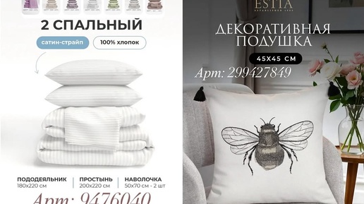 Нежная молочно-бежевая гамма, немного тактильных фактур и выверенная геометрия — именно из таких деталей складывается уютное и стильное пространство. Я собрала предметы с фото и расписала их строго по порядку с артикулами: что это за вещь, как она выглядит вживую, где будет уместна и как обыграть её в интерьере. У каждого пункта — «совет стилиста», чтобы вы сразу понимали, как получить тот самый «отельный» эффект дома. Плотный сатин из стопроцентного хлопка с деликатной полосой. В набор входит пододеяльник 180×220, простыня 200×220, наволочки 50×70 (2 штуки)...