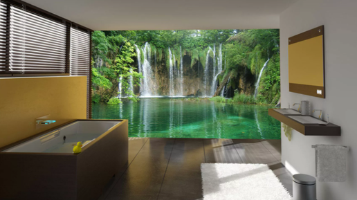 Существует множество вариантов украшения ванной комнаты, которые могут сделать Ваше жилище более оригинальным, привлекательным и красивым. Несколько из них предоставлены ниже, и в первую очередь стоит отметить панно из фотоплитки, расположенное на всей стенке.