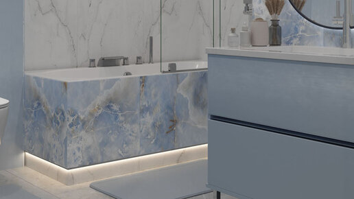 Ванная В отделке интерьера ванной комнаты для нее, использованы акцентные цвета от небесно-голубого до глубокого-синего, что напоминает небо в разных его проявлениях и является ассоциативным рядом концепции проекта видовой квартиры...