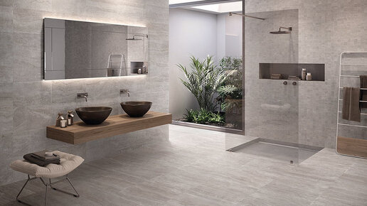 Серый керамогранит в ванной: никогда не выйдет из моды
