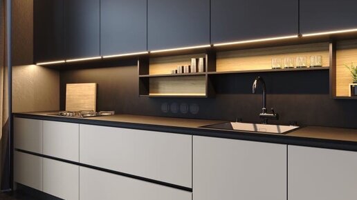 Кухни без ручек. Виды открывания кухонных шкафов.