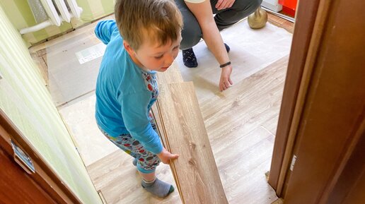 Ламинат все эти годы служит нормально, но на кухне не выдержал ёрзанье стульев и прилично протерся. Поэтому решили его поменять. Плюс у нас очень холодная кухня.