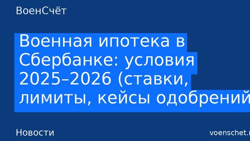 Военная ипотека в Сбербанке: условия 2025–2026 (ставки, лимиты, кейсы одобрений)
