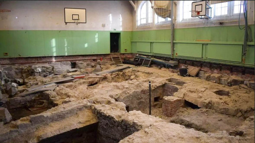 Сняли старый пол в спортзале и срочно вызвали археологов. Рабочие наткнулись на старинные руины во время планового ремонта