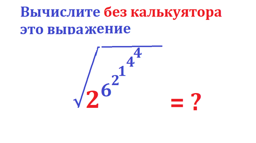 Приветствую читателей и подписчиков канала Тесты_математика! Рассмотрим на вид непростую задачу на вычисление корня из множества степеней числа 2. Условие задачи. Вычислите без калькулятора выражение: 2^6^2^1^4^4 Казалось бы сложность в задаче это вычислить все степени числа 2, и это по порядку, сначала вычислим 4^4, получим некоторое число, которое мы вычислять не будем, потому что в конструкции задания есть степень 1, что очень меняет решения, вернее, упрощает решение. Для решения задачи с возведением степени в степень, нужно последовательно применять правила возведения в степень...