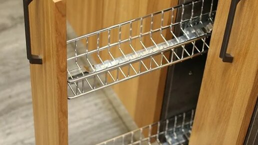 Бутылочница или карго - это выдвижная узкая сетчатая корзина. Ширина шкафа для бутылочницы 150-200 мм. Если шире, то это уже выдвижная корзина. Как правило, у бутылочницы 2 яруса: верхний для банок и нижний для бутылок...