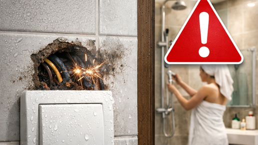 Вода, пар, конденсат, мокрые руки, босые ноги и электричество живут здесь бок о бок. И при этом мы до сих пор регулярно видим одно и то же: самый обычный выключатель, как в спальне или коридоре, установлен прямо у двери ванной...