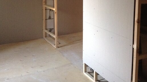 Выравнивание деревянного пола фанерой. Обшивка стен гипсокартоном.