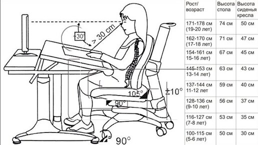 Какая должна быть высота стула и стола для первоклассника