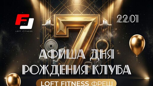 🎂 ❤️❤️❤️❤️ 🫥❤️❤️❤️❤️❤️❤️❤️ LOFT FITNESS Фреш — НАМ 7 ЛЕТ! 22 января мы приглашаем каждого члена нашей большой фитнес-семьи на грандиозный День рождения! В программе праздника: 🔥 Харизматичный ведущий и вспышки фотокамер 🥂 Праздничный фуршет и именинный торт 📸 Шикарная фотозона на ресепшене и фотобудка для ваших снимков в тренажерном зале 🎁 Розыгрыш крутых подарков АФИША СОБЫТИЙ: 💦 БАССЕЙН: • 17:00 — AQUA ZUMBA • 17:30 — AQUA FLAT 🏋️♂️ ТРЕНАЖЕРНЫЙ ЗАЛ: • 18:00 — Веселые старты для...