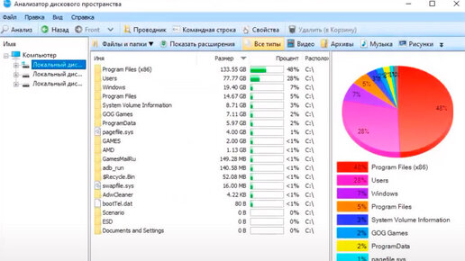 Как определить на что уходит свободное место на жестком диске в Windows и как его освободить