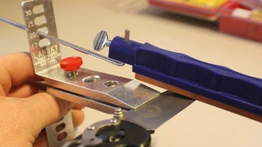Заточка охотничьего ножа на водных камнях с держателем угла заточки типа - костыль