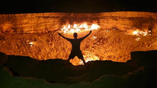 Путешествие по стране было бы неполным, если ограничиться только столицей. Поэтому, из Ашхабада мы выезжаем знакомиться с достопримечательностями Туркменистана за пределами мегаполиса. На первом месте стоит газовый кратер в местечке Дарваза, именуемый в народе "Врата ада", в официальных источниках называется поэтически, "Сияние Каракум". Выезжаем из столицы на север, в сторону границы с Узбекистаном, причем, надо пересечь пустыню почти полностью. На самых окраинах Ашхабада построен огромный жилищный комплекс на индивидуальных участках в 6 соток...