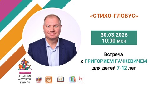 Онлайн-встреча в рамках Недели детской книги — 30 марта 2026 года, 10:00 (МСК). Можно ли объехать весь мир за один час? Детский поэт Григорий Гачкевич уверен — да, если у вас есть воображение и любовь к загадкам. Его серия «Стихо-глобус» — это не просто стихи, а настоящий поэтический компас, который ведёт читателя от страны к стране, от удивления к открытию. На встрече в рамках Недели детской книги дети не только услышат стихи, но и станут участниками игры, путешествия и творческого конкурса. Мы задали автору вопросы, ответы на которые уже звучат как приглашение в путь...
