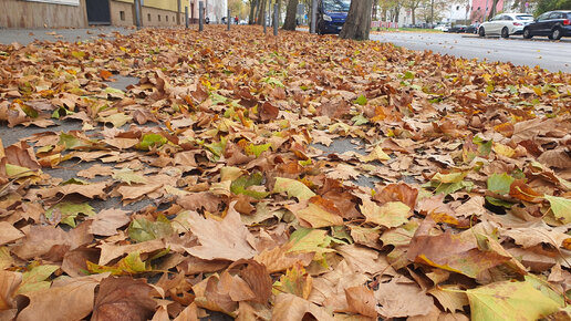 И не только. Еще и под ногами, где ими так приятно пошуршать! Тут нет маниакального стремления городских коммунальных служб все это куда-то тут же смести, сжечь, уничтожить. Деликатно собирают в специальные контейнеры, но - не быстро, не сразу...