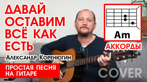 ДАВАЙ ОСТАВИМ ВСЁ КАК ЕСТЬ - А. КОРЕНЮГИН (ВИДЕОРАЗБОР) ПРОСТАЯ ПЕСНЯ НА ГИТАРЕ (АККОРДЫ БЕЗ БАРРЭ) РАЗБОР