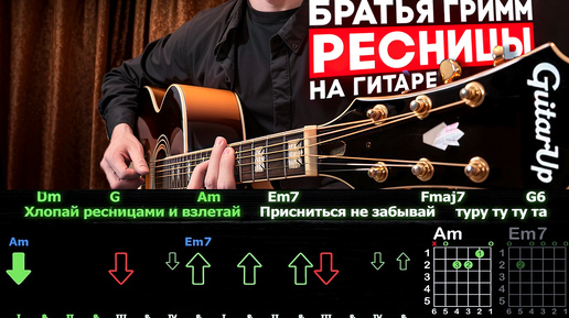 Всем привет! С вами Руслан, автор канала GuitarUp. Сегодня максимально быстро и понятно разбираем один из самых трогательных и лиричных хитов группы Братья Гримм – «Ресницы»! В этом видео я сыграю песню целиком на акустической гитаре, а на экране — интерактивная графика в реальном времени: схемы аккордов и стрелки направления боя! Никакой воды — только самое нужное, чтобы ты заиграл эту душевную песню уже сегодня. 🎸🖤