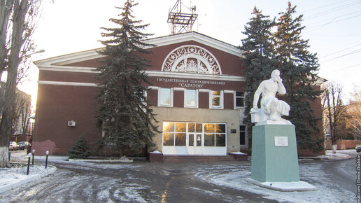 В 2015 году состоялась уникальная экскурсия по территории ГТРК Саратов. Уникальная тем, что нам были впервые продемонстрированы те комнаты и то оборудование, которое посетителям никогда ранее не показывали. Об объёме увиденного хорошо говорит то, что экскурсия длилась 4 часа! С тех пор кое-что изменилось, например полностью обновили телестудию. Но я пока её не видел обновленной. Надеюсь попасть туда в этом году. Тогда и расскажу об этом. На входе нас встречает нас памятник Попову, изобретателю радио...