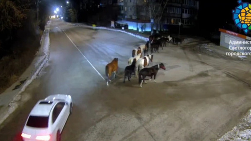 В ночном Светлогорске заметили скачущий табун лошадей