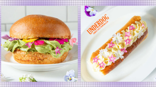 В баре Underdog к 8 Марта сделали сладкий бургер и сладкий хот-дог со съедобными цветами