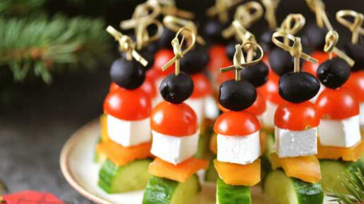 Проявив творческий талант, вы сможете увлечь своих гостей, предложив красиво оформленные и восхитительные закуски, которые придадут трапезе радостную атмосферу. Используя обычные ингредиенты, вы сможете удивить своих друзей кулинарными творениями, одновременно простыми и необычными. Эти ароматные и яркие закуски возбуждают аппетит посетителей и служат восхитительной прелюдией к основным блюдам. 1) КАНАПЕ «ГРЕЧЕСКОЕ» Этот рецепт для тех, кто не представляет свой праздничный стол без греческого салата...