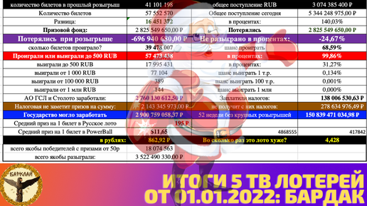 Итоги 5 ТВ лотерей от 01.01.2022 - новогодний бардак!