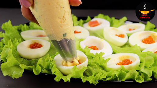 Друзья, а вы не задумывались над тем, что именно подготовка закусок отнимает львиную долю сил и времени хозяйки? В этой статье я расскажу вам о семи невероятно вкусных и красивых закусках, которые займут минимум времени, но при этом произведут настоящий фурор среди гостей. Такие фаршированные яйца – отличное решение для праздничного стола. Несмотря на кажущуюся простоту, закуска может быть разнообразной по вкусу в плане начинки, яркой и интересной – при подаче. яйца; красная икра/малосолёная сёмга; зелень; майонез; Для подачи: свежий огурец; зелень; красная икра...