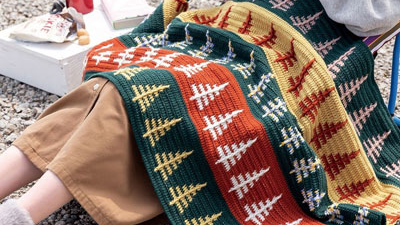 Симпатичный плед с елочками крючком в технике жаккарда из японского журнала