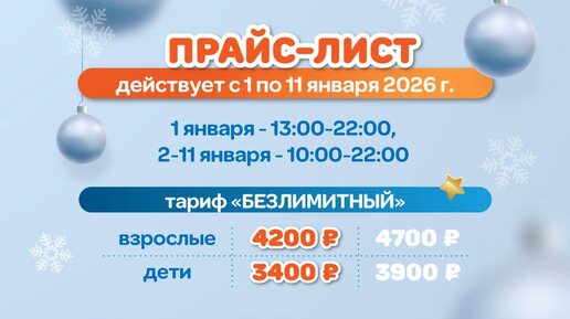 🎄Актуальный прайс и график работы аквапарка «Улёт» с 1 по 11 января 2026 года