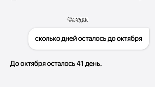 22 июля Алиса выдала очередной перл. Я спросил у осени Спросил Алису, "живущую" в Яндекс.Станции Лайт: – Алиса, сколько дней осталось до октября? Она ответила: – До октября осталось 41 день. Повторил вопрос. Она ответила: – До октября осталось 61 день...